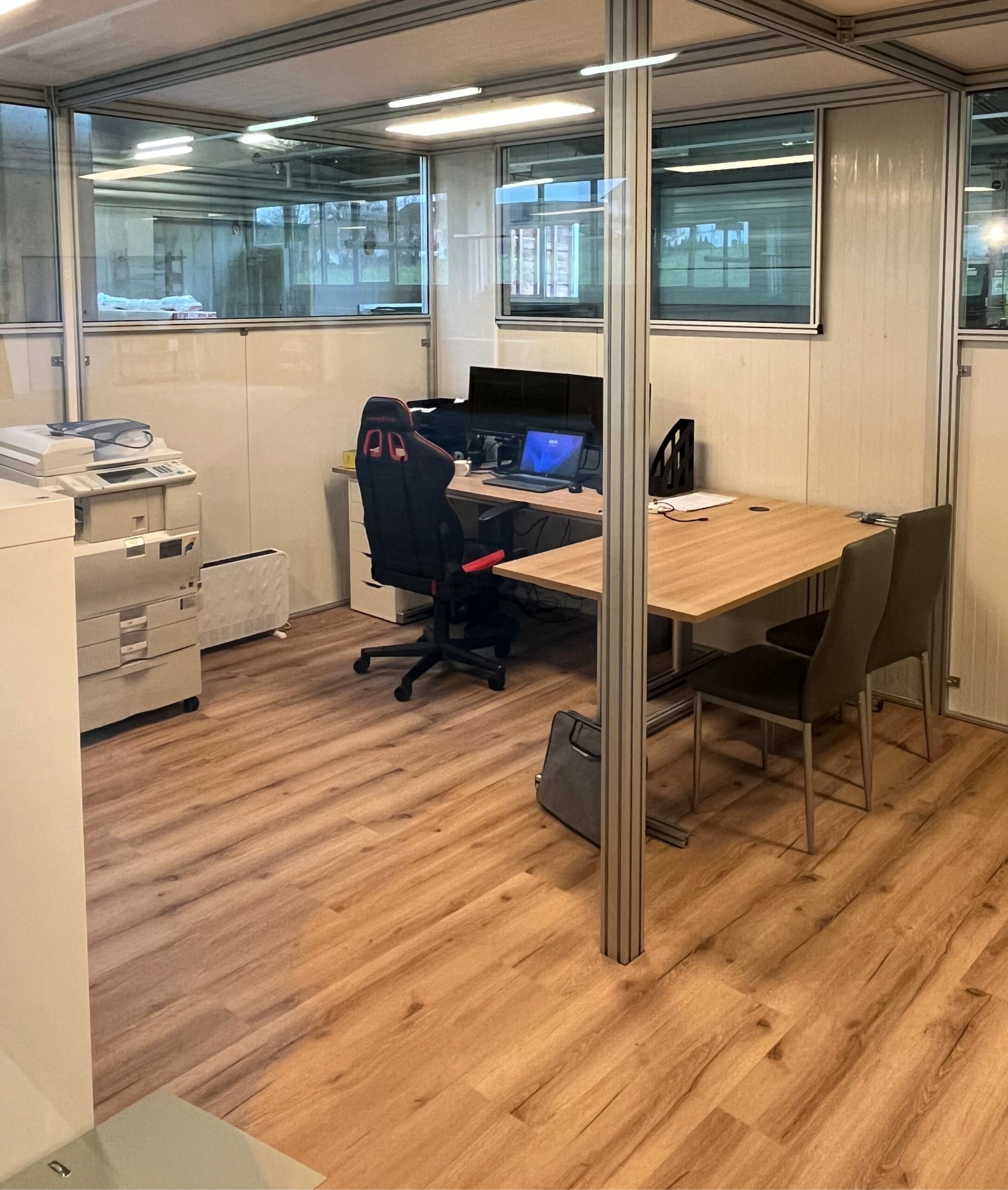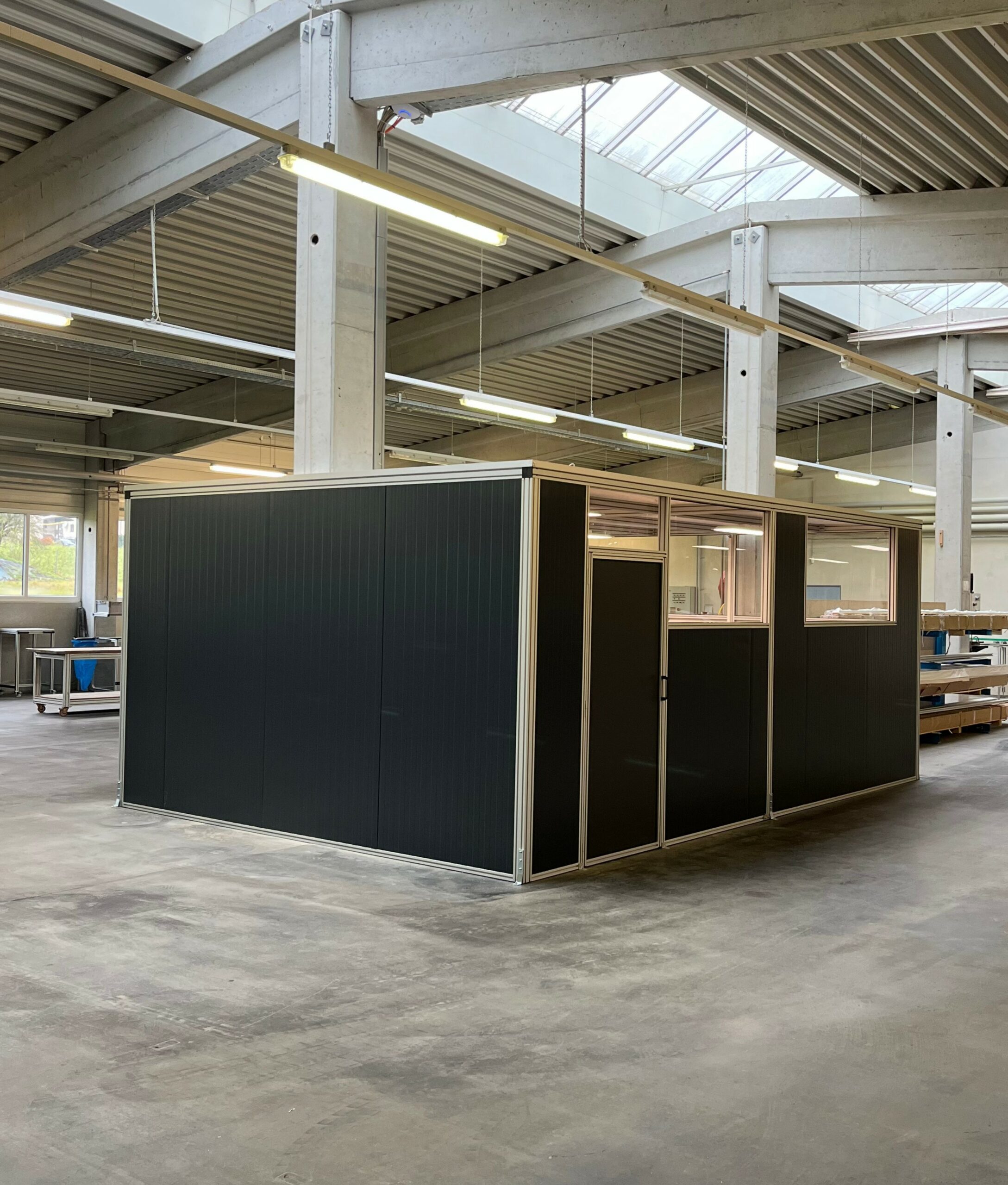 Der „CUBE“ ist ein flexibles Büro für unsere Techniker, das mitten in unserer Produktionshalle entsteht. So schaffen wir kurze Wege, direkte Kommunikation und einen Arbeitsplatz, der Technik und Arbeitsalltag perfekt verbindet. Außerdem möchten wir zeigen, was mit Aluminiumprofilen alles möglich ist. Dieses Vorzeigeprojekt demonstriert eindrucksvoll die Vielseitigkeit und Qualität unserer eigenen Produkte – von der robusten Konstruktion bis hin zu funktionalen Details wie integrierter Beleuchtung und Kabelmanagement.
